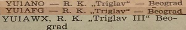 Radio-klub „Triglav“ - Beograd formira dve primo-predajne sekcije i dobija 1950.g.[2] odobrenje za emitovanje i pozivne znakove YU1AFG i YU1ANO.